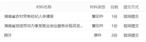 办理条件:在湖南省劳务协作脱贫综合信息服务平台中进行了实名制登记的本省建档立卡农村劳动力,包括人力资源社会保障部下发至省平台的人员,以及经当地扶贫部门认可自行采集录入省平台的人员。