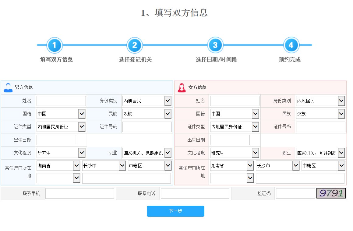 1、登录湖南省婚姻登记网上预约平台
