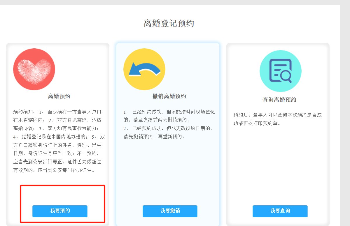 3、选择离婚预约版块,点击我要预约