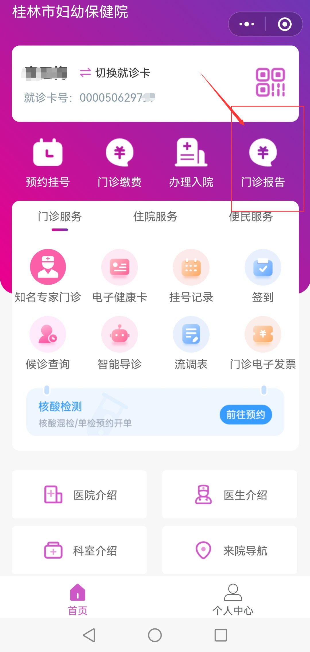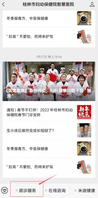 第一步:手机关注“桂林市妇幼保健院智慧医院”