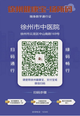 02、所有来院人员均需全程、规范佩戴口罩(呼吸阀口罩不得入院),在医院入口处主动出示健康码、行程码,扫描徐州市健康宝“场所码”,接受体温检测, 如实填写《江苏省医疗机构预检分诊操作表》,经预检分诊医务人员预检后,持已检票据进入门诊挂号就诊。