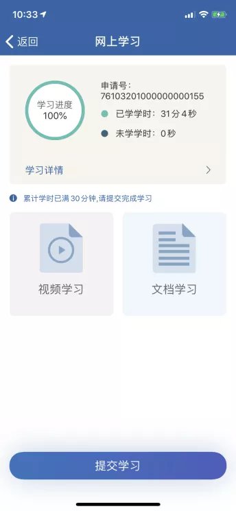 5、学时学满之后,进入该学习记录提交页面,点击【提交学习】按钮提交。