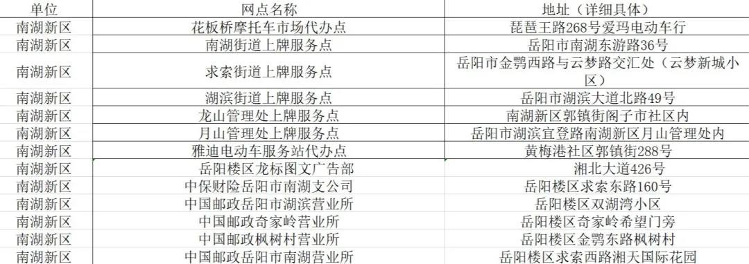 各位“骑手”请注意!岳阳城区电动车,免费上牌地点汇总,来咯!共13个。