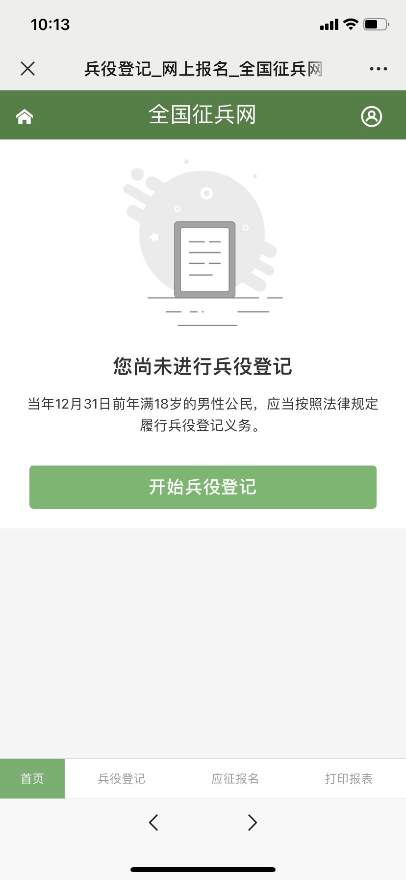 填写个人基本信息,报名成功后, 自行下载打印《男性公民兵役登记/应征报名表》(非大学生)或《大学生预征对象登记表》(大学生)