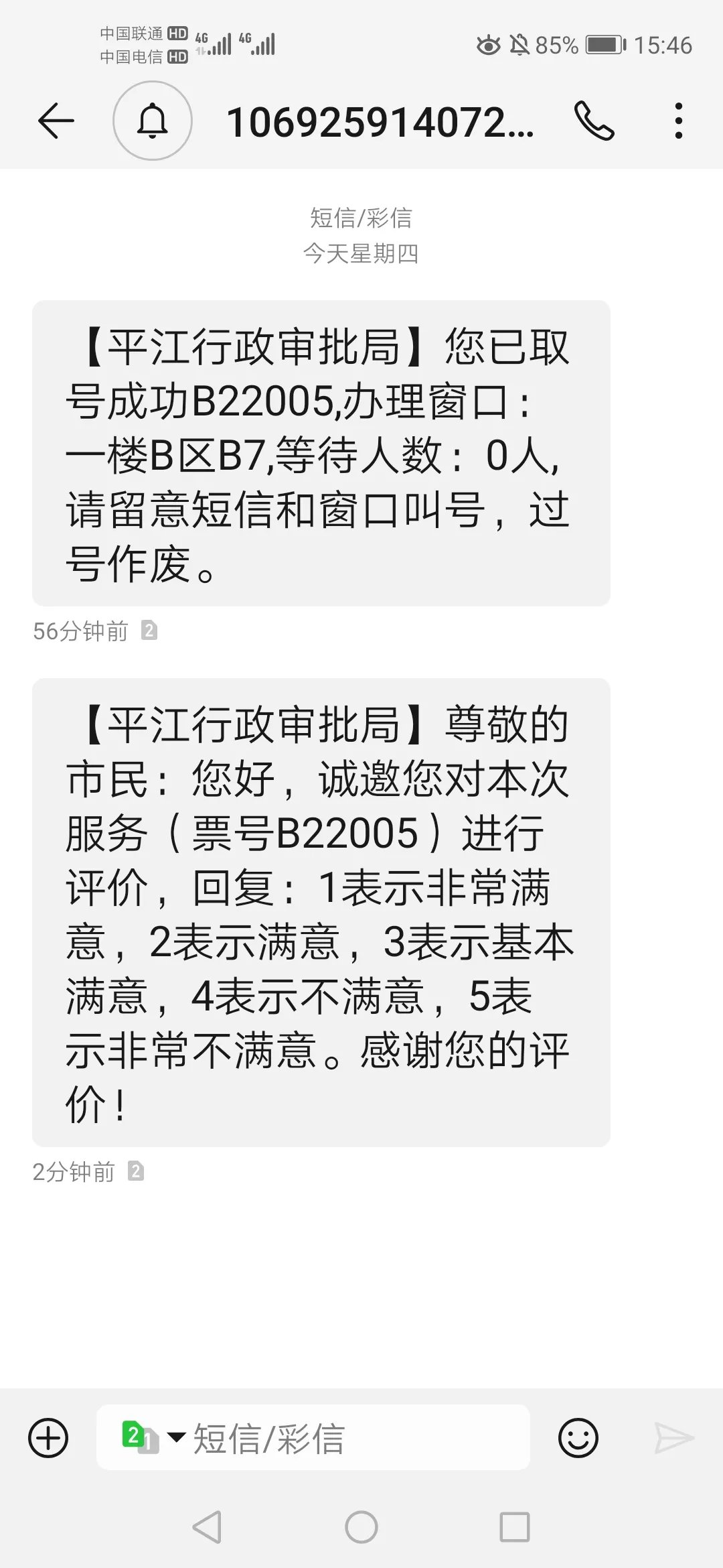 第四步:取号成功后,系统会通过手机短信向您推送取号成功信息,提醒您不要错过了办理时间。