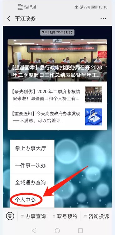 第一步:手机端关注“平江政务”微信公众号。