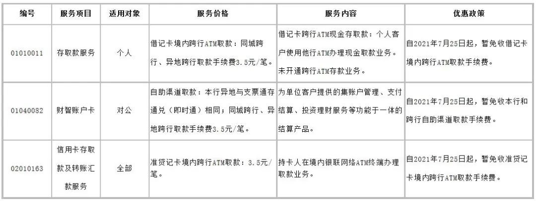 为响应中国银行业协会、中国支付清算协会《关于降低自动取款机(ATM)跨行取现手续费的倡议书》,我行决定调整《中国工商银行服务价目表(2017年版)》中涉及ATM跨行取现服务的收费标准和优惠政策,并于2021年7月25日零时生效。根据《商业银行服务价格管理办法》有关规定,现公示如下:
