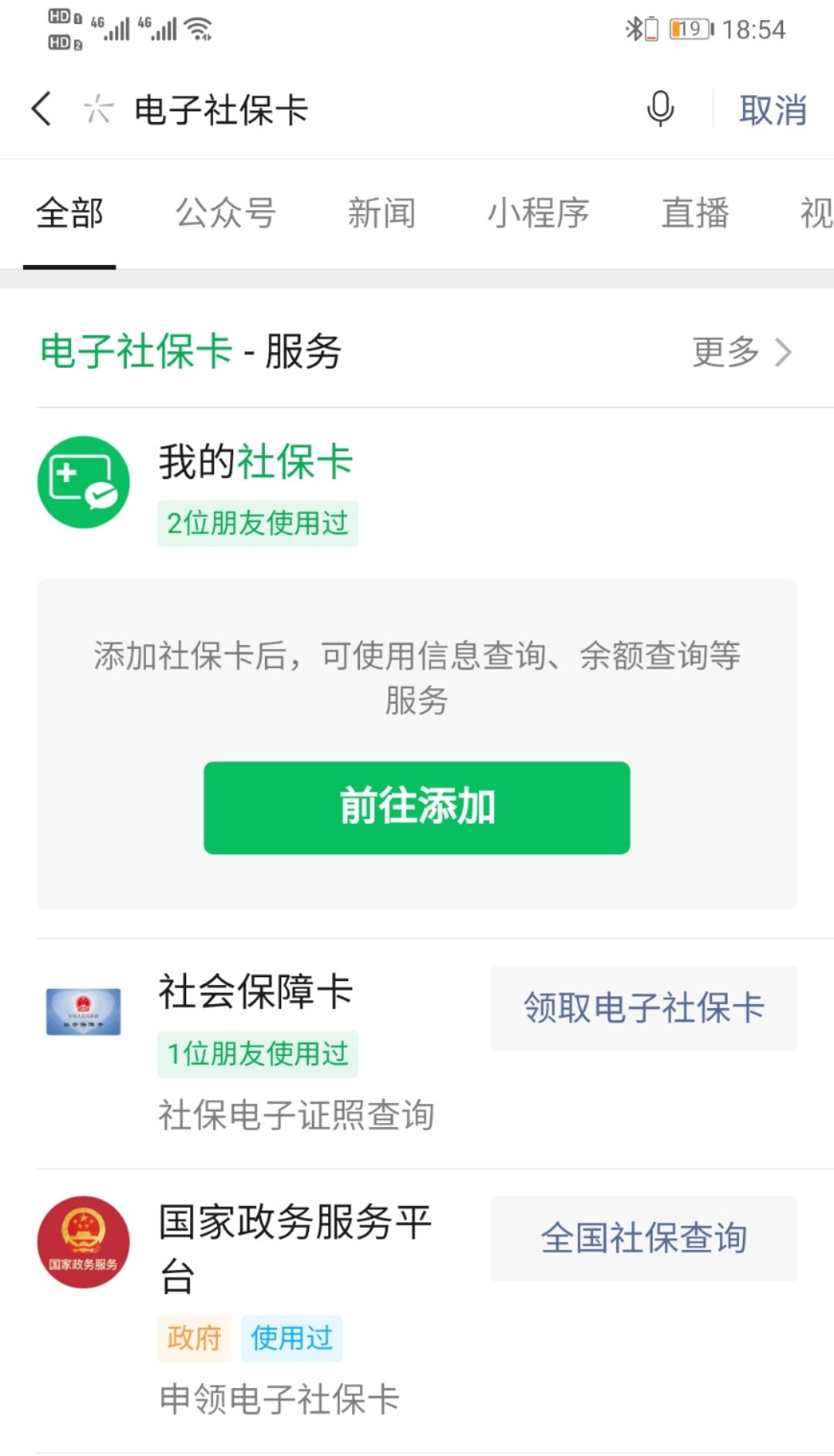 方法一:在微信搜索社保、社保查询、社保办理等与社保相关的关键词即可得到相应服务,除了社保以外,如果搜索公积金、居住证、身份证、违章缴纳等关键词,同样也可以得到对应的办理服务;