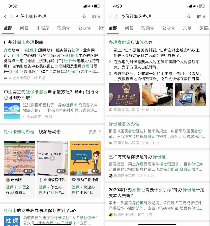 在微信搜索社保卡如何办理、身份证怎么办理等与政务办事相关的问题,也可以得到相应的解答文章,届时只需点击查看即可了解到对应的答案哦