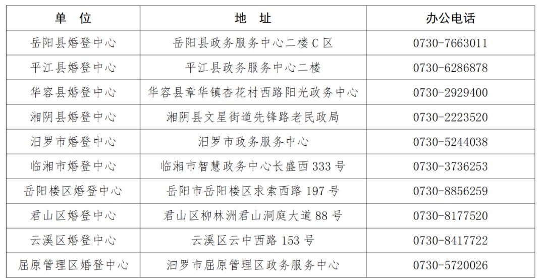 岳阳结婚登记办理指南 岳阳县婚姻登记中心