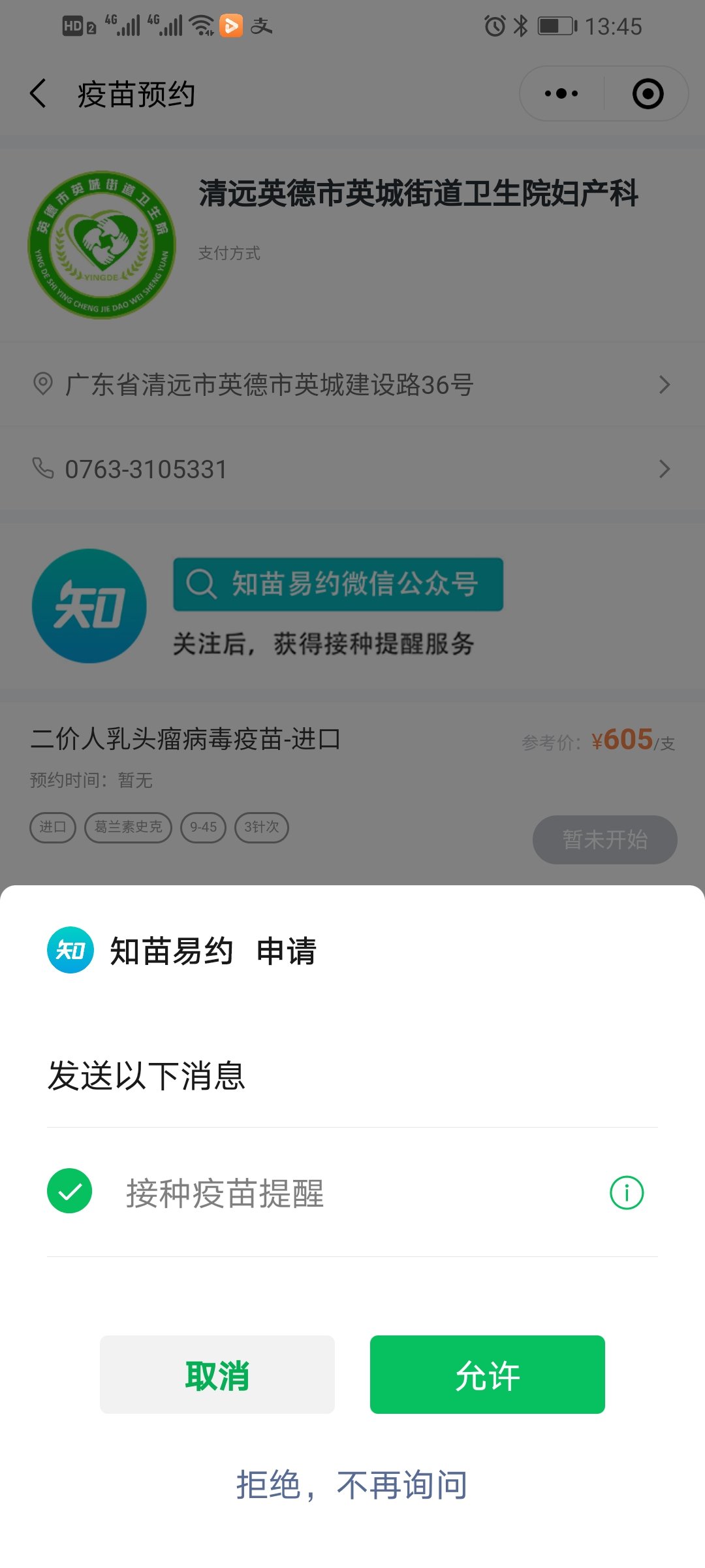 知苗易约宫颈癌疫苗预约平台在“知苗易约”小程序;