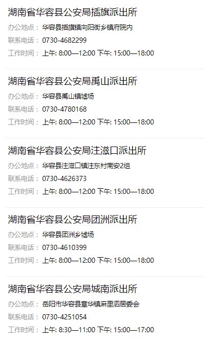 办事机构:华容县公安局、各派出所