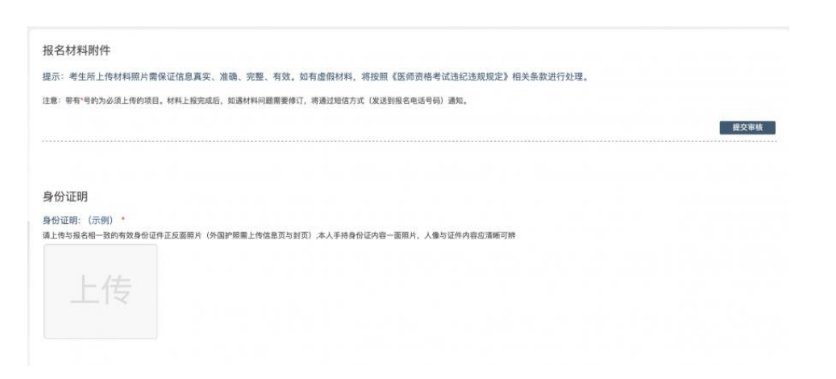 注意:这里显示的内容,是医师资格考试所有可能需要的材料列表,考生根据自己的个人情况和考区通知要求,上传必需的报名材料图片。