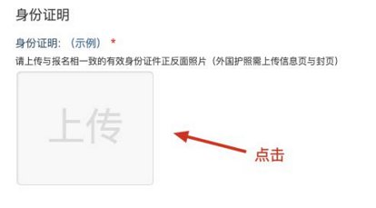 以上传“身份证明”为例,点击“示例”查看要求,再点“上传”按钮,进入上传图片界面,将个人已经准备好的图片文件上传。如下图: