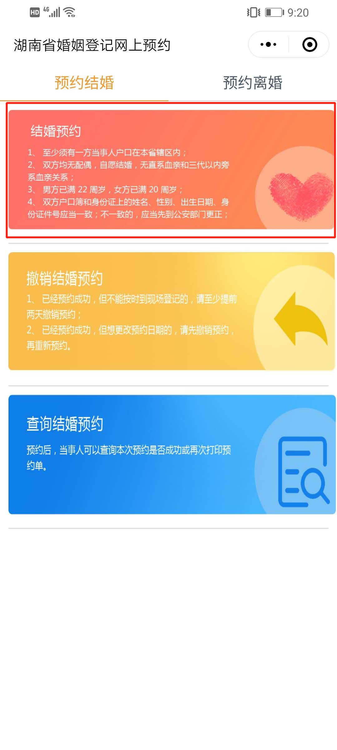 第三步,点击页面中的“结婚预约”,进入前记得查看结婚预约的条件喔;