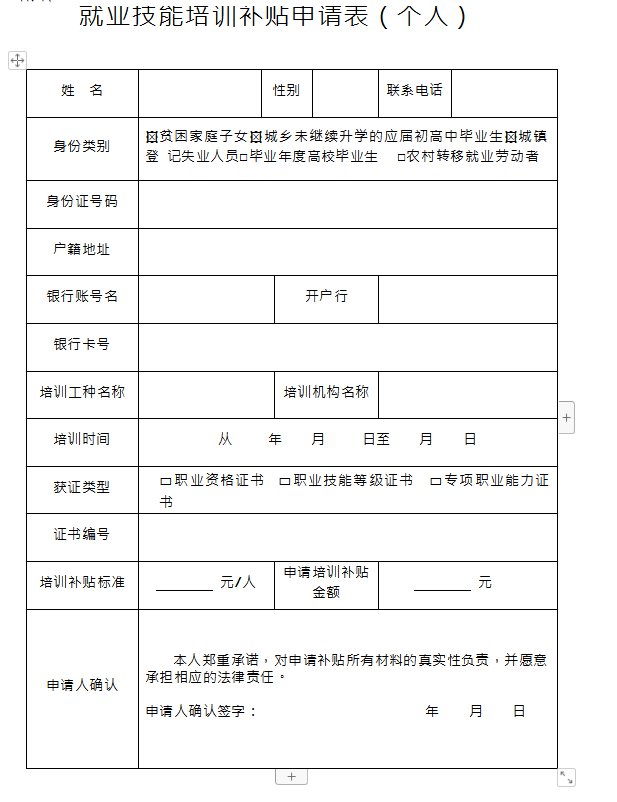在职参保职工技能提升补贴申请表:点此下载