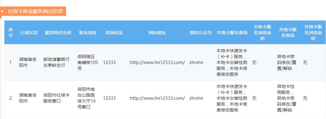 2、湖南省岳阳市岳阳市社保卡服务窗口