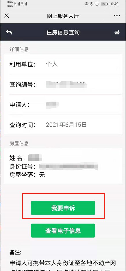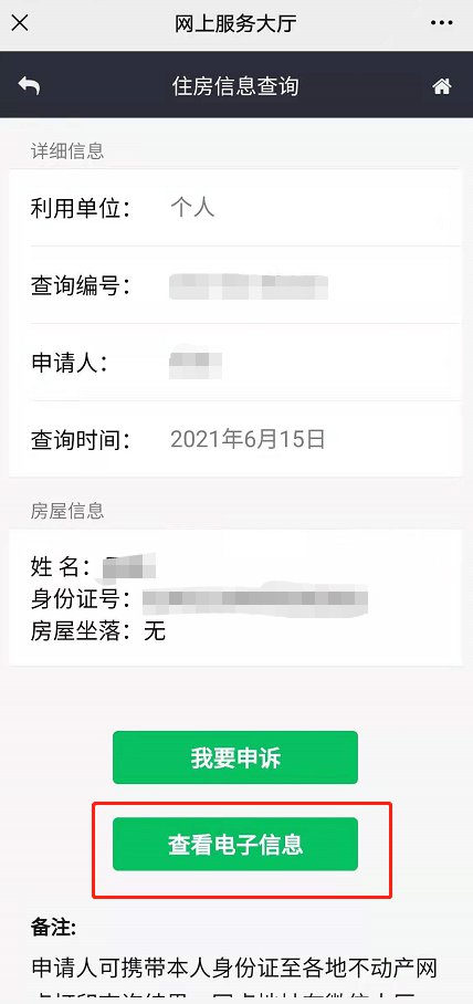 12、若无需申诉,请直接点击“查看电子信息”按钮,查看住房证明