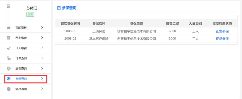 在湖南省税务社保费网上缴费系统首页,分别点击参保查询、缴费查询功能,可以查询到参保用户的社保权益。