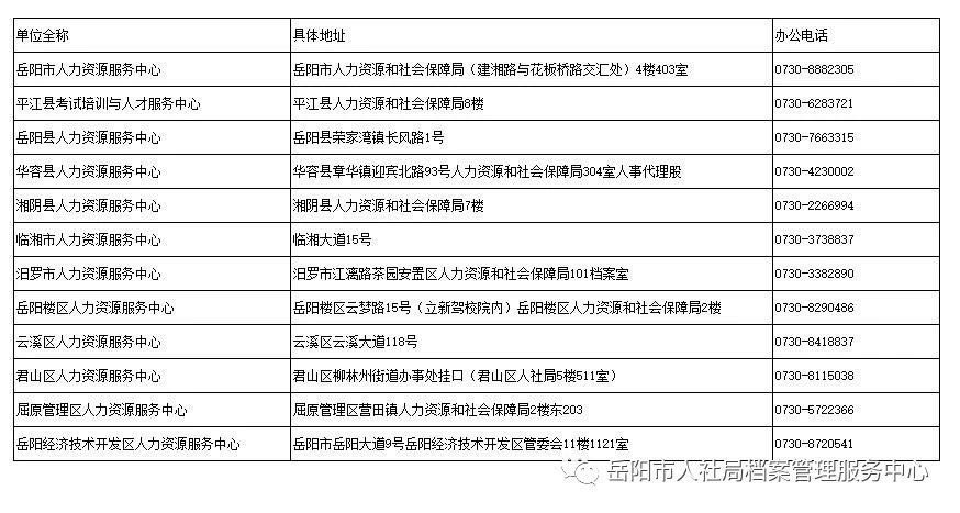 岳阳市流动人员人事档案管理服务机构信息