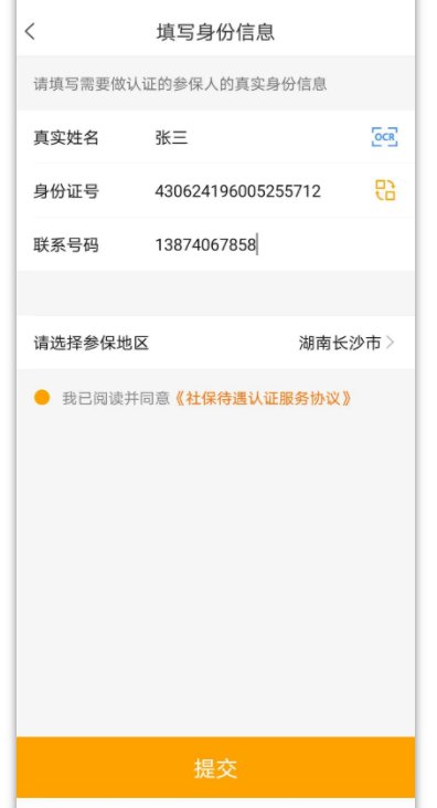 选择参保地,填写参保人身份信息,点击”提交“;