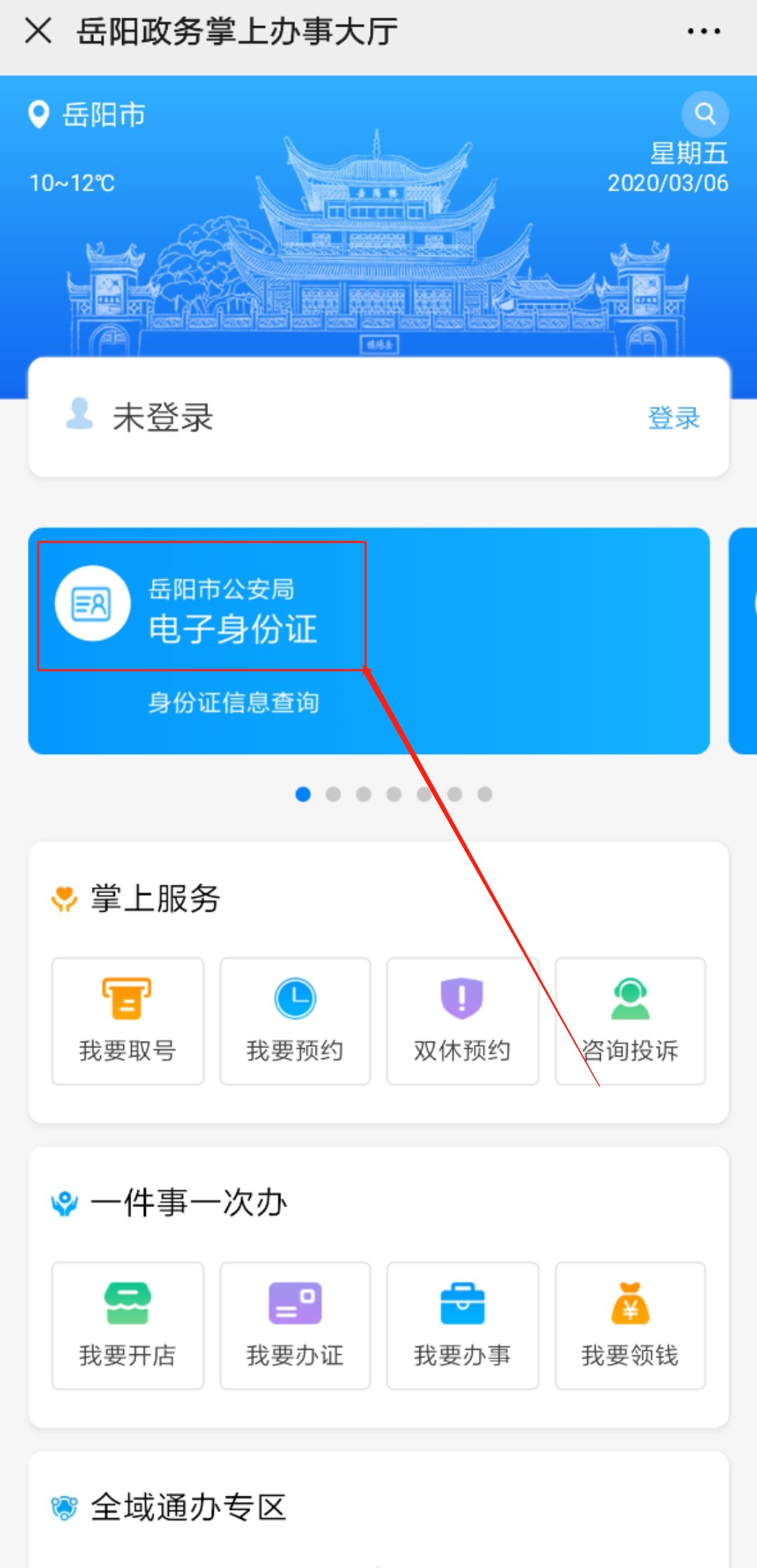 一、 微信小程序“岳办岳好”,进入岳阳电子身份证。