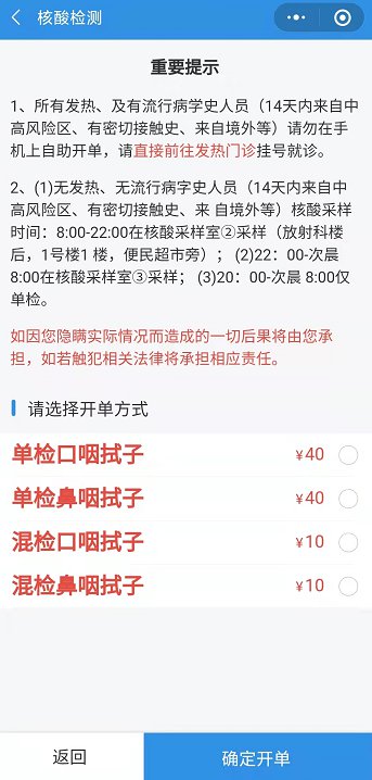 (3)点击【门诊服务】——【核酸检测】,即可进入预约入口。(包括采样时间及费用等)