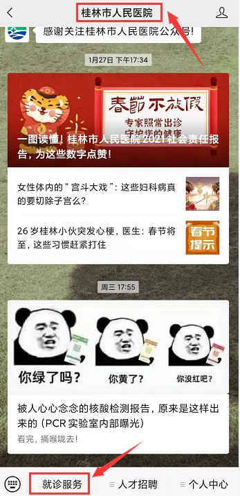 (1)微信搜索“桂林市人民医院”并关注公众号;