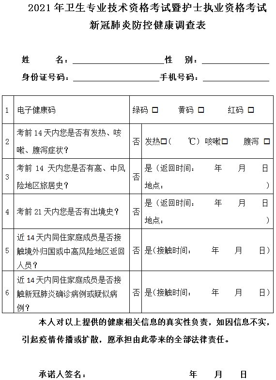 附件:2021年卫生专业技术资格考试暨护士执业资格考试新冠肺炎防控健康调查表