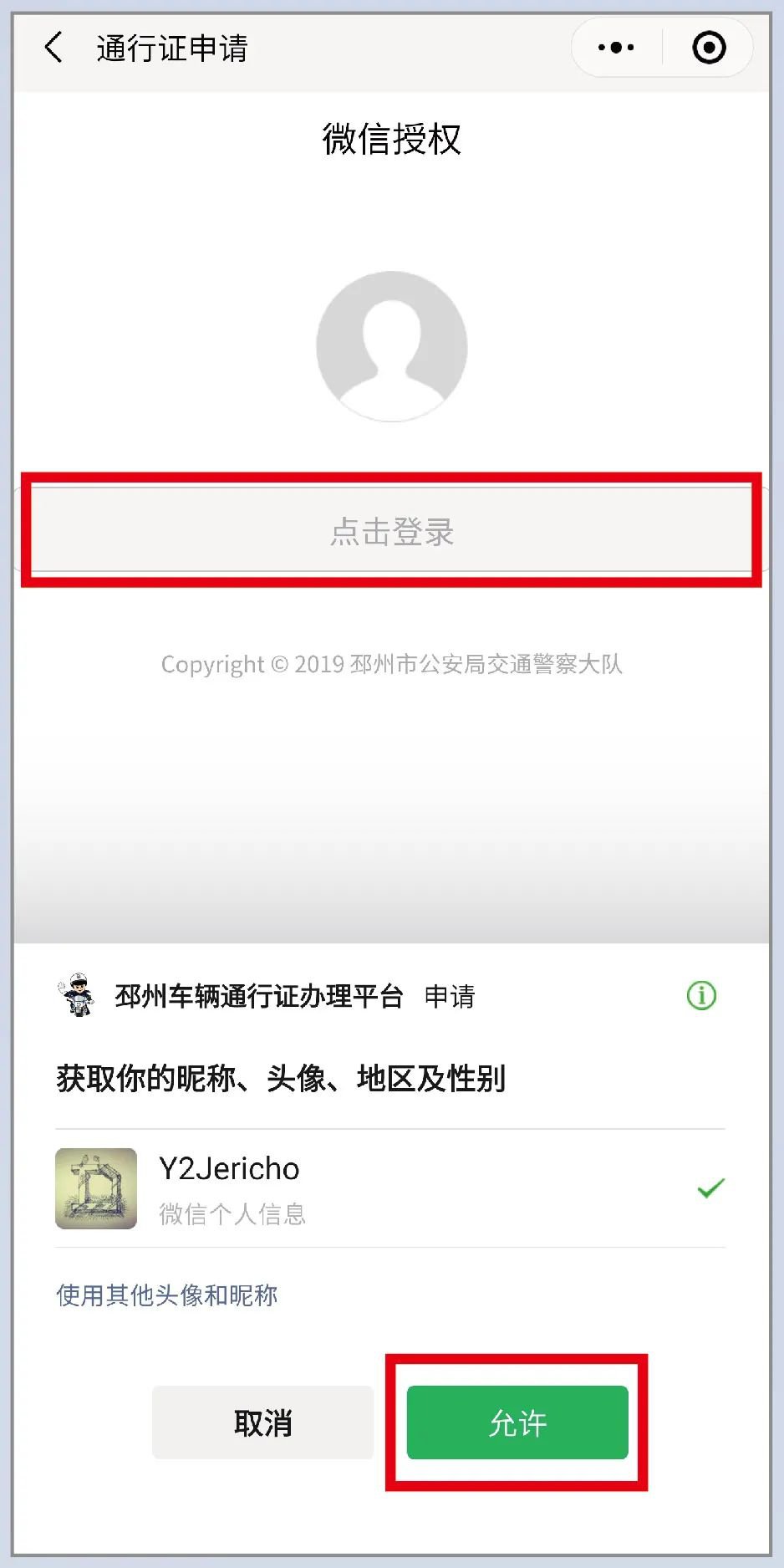 03点击“点击登录”并点击允许进行登录