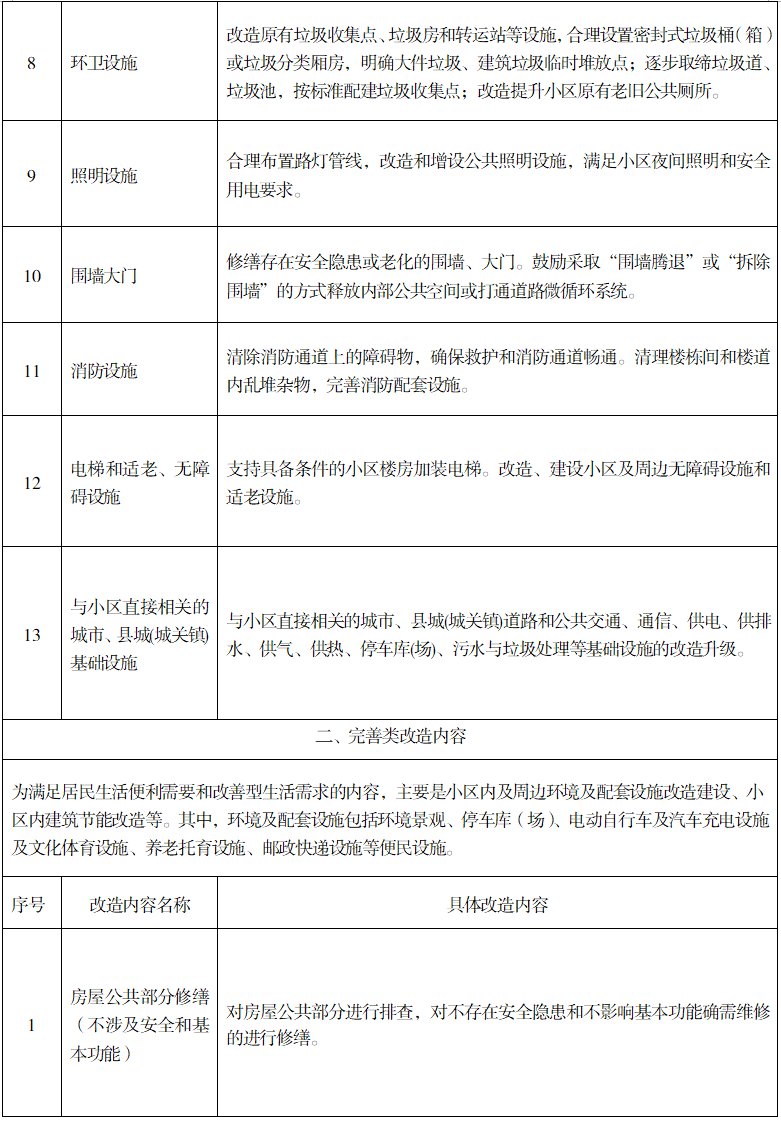 附件:湖南省城镇老旧小区改造内容清单