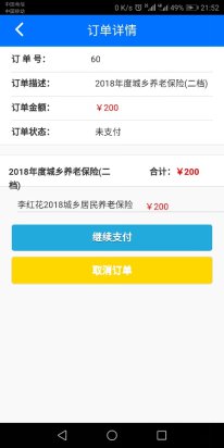 缴费过程中,用户可以在缴费订单管理菜单中查阅自己的缴费订单,并可根据订单情况进行取消订单,查阅,继续支付等相关操作。