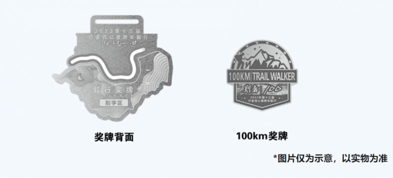 抵达100公里终点的全程组毅行者,可以领取一块完成100km的勋章,奖牌中特别添加了滑动模块,对应了行者百公里的活动路线,可以将100km奖牌放置于滑轨之上顺应路线滑动,而这也正是这块奖牌的特别之处。用岁月去回味这段曾经走过的路!