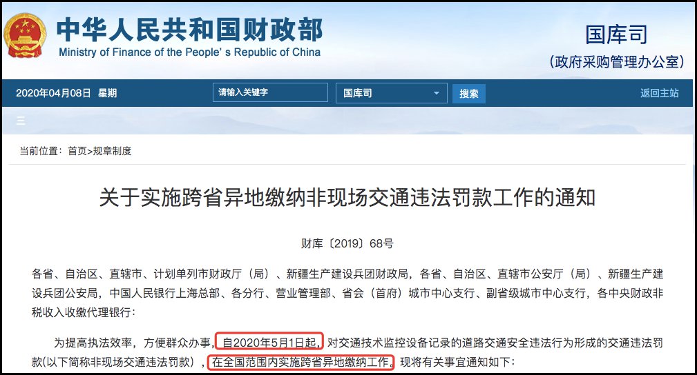 好消息:为提高执法效率,方便群众办事,近日,财政部、公安部、中国人民银行联合下发《关于实施跨省异地缴纳非现场交通违法罚款工作的通知》,自今年5月1日起,非现场交通违法罚款,可在全国范围内跨省异地缴纳。