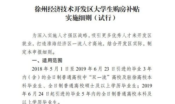 除了全市就人才引进给予补贴,一些下属区为了吸引更多优秀人才来本区就业,也结合自身情况出台相关补贴,譬如,徐州经济开发区,在2020年12月初,发布了大学生购房补贴细则: