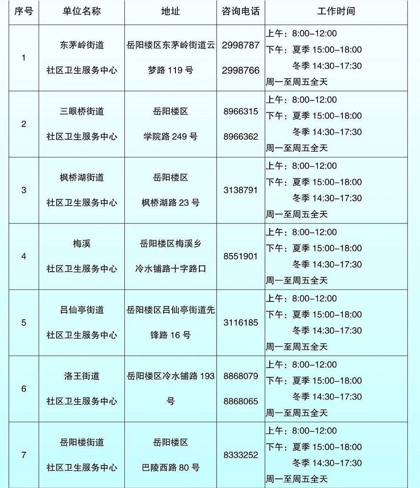 岳阳楼区2020城市癌症早诊早治项目报名网点