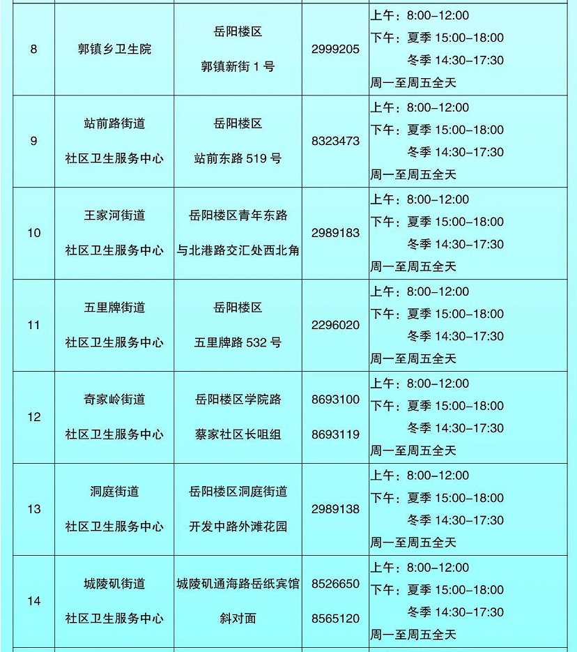 岳阳楼区2021城市癌症早诊早治项目报名网点