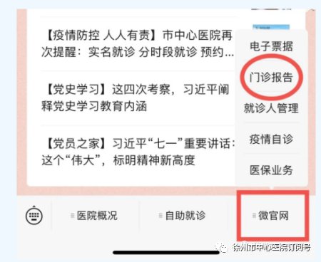 您可以进行网上查询,在“徐州市中心医院”微信公众号首页最右下角点“微官网——门诊报告”可进行结果查询。