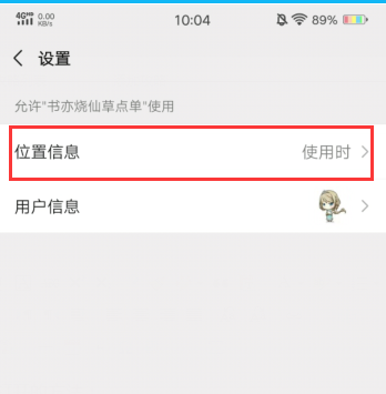3、选择设置,点击位置信息,选择仅在使用小程序期间即可。