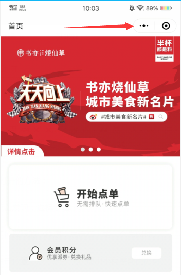 2、选择要打开定位权限的小程序,点击右上角三个点图标。