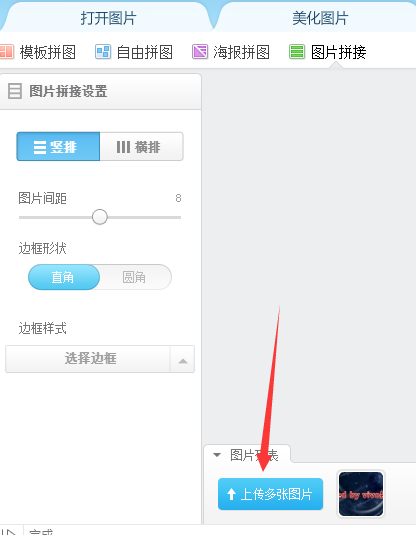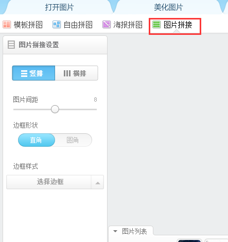 2、点击【添加图片】按钮之后,选择上方菜单里的【图片拼接】按钮。