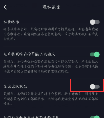4、关闭“展示活跃状态”即可使自己的抖音不显示在线状态。