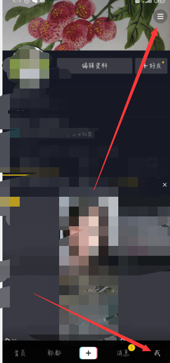 1、打开抖音后点击下方的“我”,在我的页面点击右上角的三横标志;