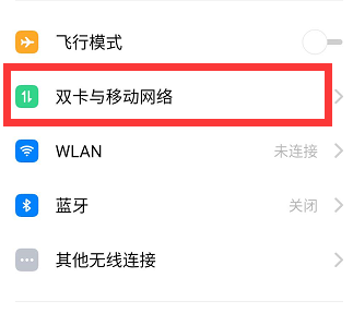 1、先在手机的桌面上找到应用程序“设置”,找到“双卡和移动网络”选项,点击打开。