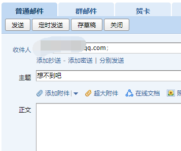 1、打开QQ邮箱,输入收件人的QQ邮箱号和主题。