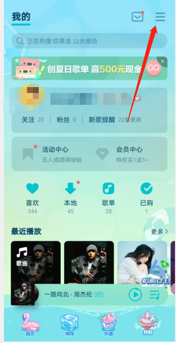 1、打开【QQ音乐】APP,选择屏幕右下角【我的】。