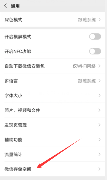 3、点击微信存储空间。