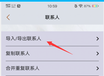 2、找到联系人,选择导入/导出联系人。