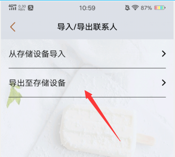 3、然后选择导出至存储设备,然后勾选选择联系人,即可导出联系人。