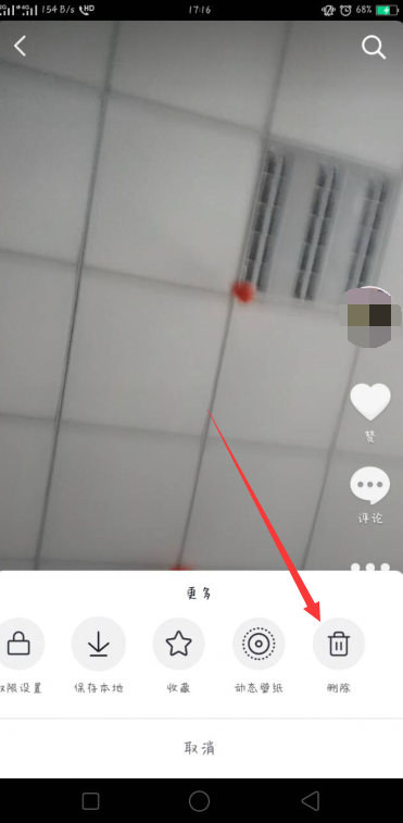 删除抖音视频的方法是: